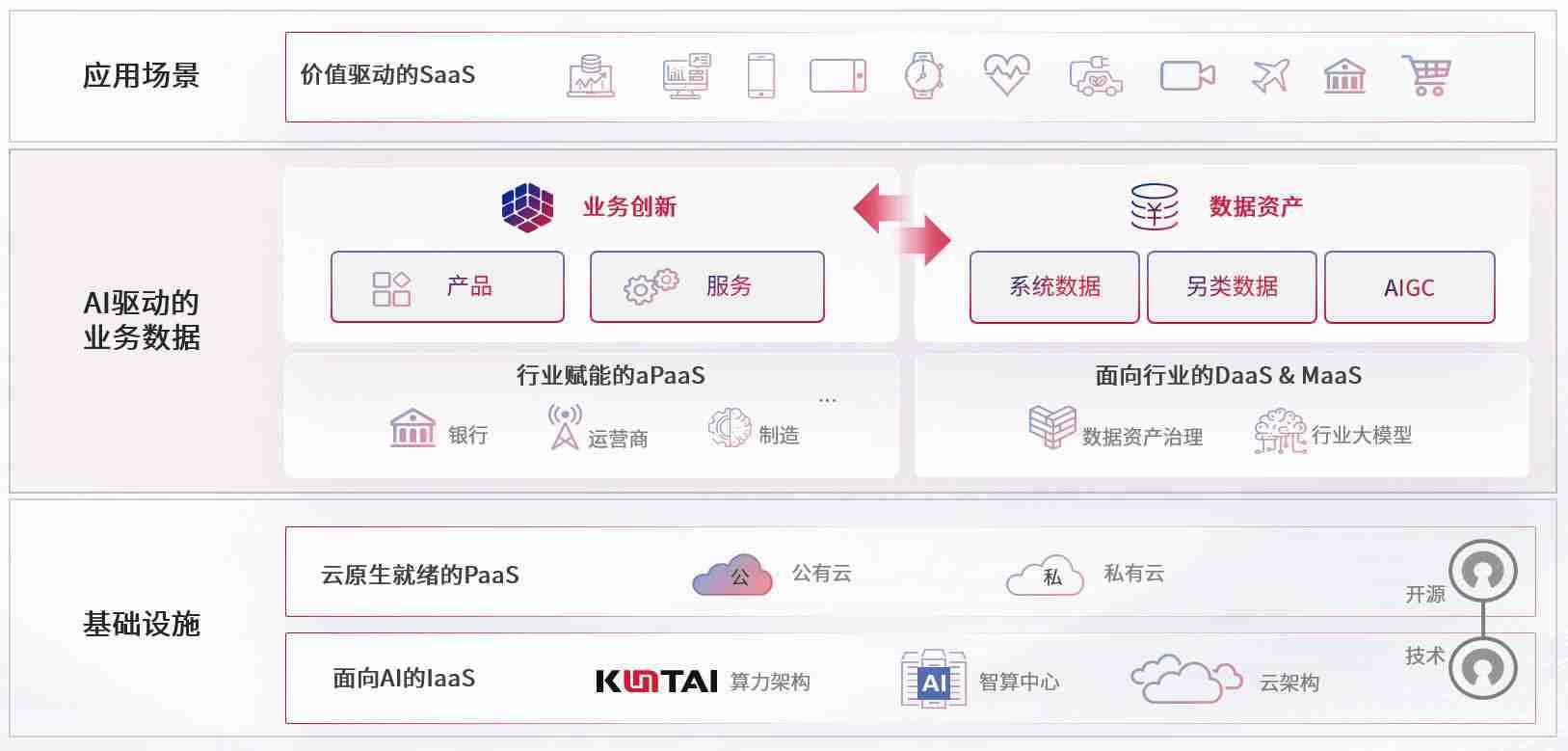 数字时代,,围绕企业数字化转型的关键要素,,,z6com尊龙数码开创性的提出数云融合战略和技术体系框架,,,着力在云原生、、、、数字原生、、、、AI原生和信创产业上架构产品和服务能力,,,,为处在不同数字化转型阶段的快消零售、、、汽车、、、、金融、、医疗、、、政企、、教育、、、、运营商等行业客户提供泛在的敏捷IT能力和融合的数据驱动能力,,构建跨界融合创新的数字业务场景和新业务模式,,助力企业级客户建立面向未来的核心能力和竞争优势,,,全面推动社会的数字化、、、智能化转型升级。。