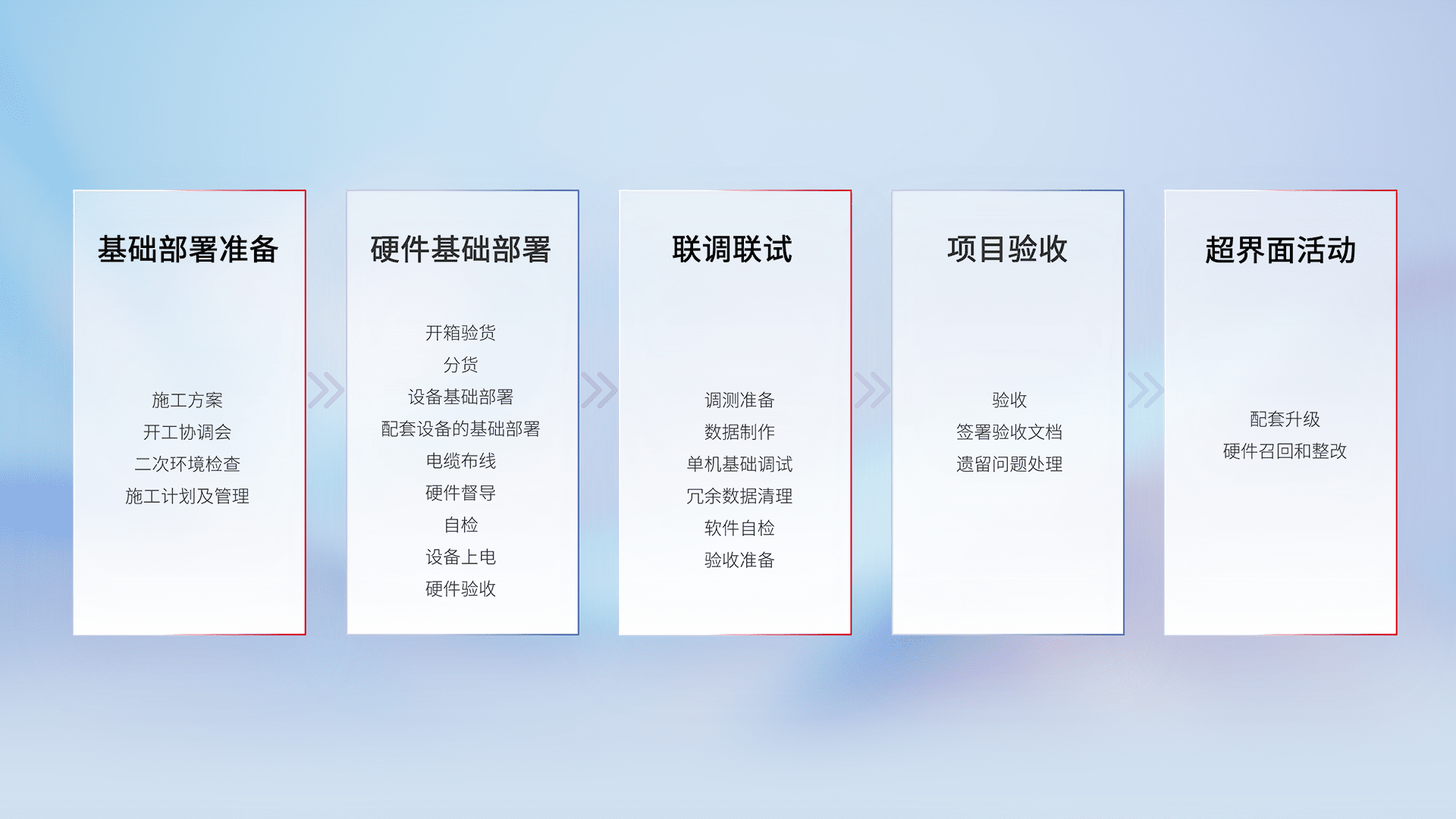 从基础部署准备、、、、硬件基础部署、、、、联调联试、、项目验收、、越界面活动的全过程可追溯,,保证施工质量和进度。。。。